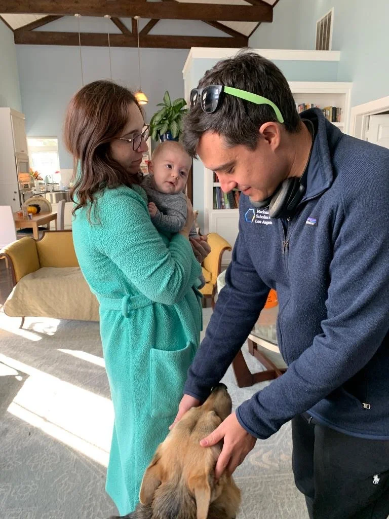“We started lessons with Rebecca to train our dog Roo for our upcoming baby. We wanted to make sure she was well prepared with skills to cope with the upcoming changes of having a baby in the house. The lessons helped tremendously! Everyone who knows Roo has been so impressed by her new skills. Before, she would jump on visitors at the door. Now she’ll go “say hi” by booping their hand with her nose and then come back to us. Additionally, she learned to go to her dog bed on command, so she can be out of the way if needed.